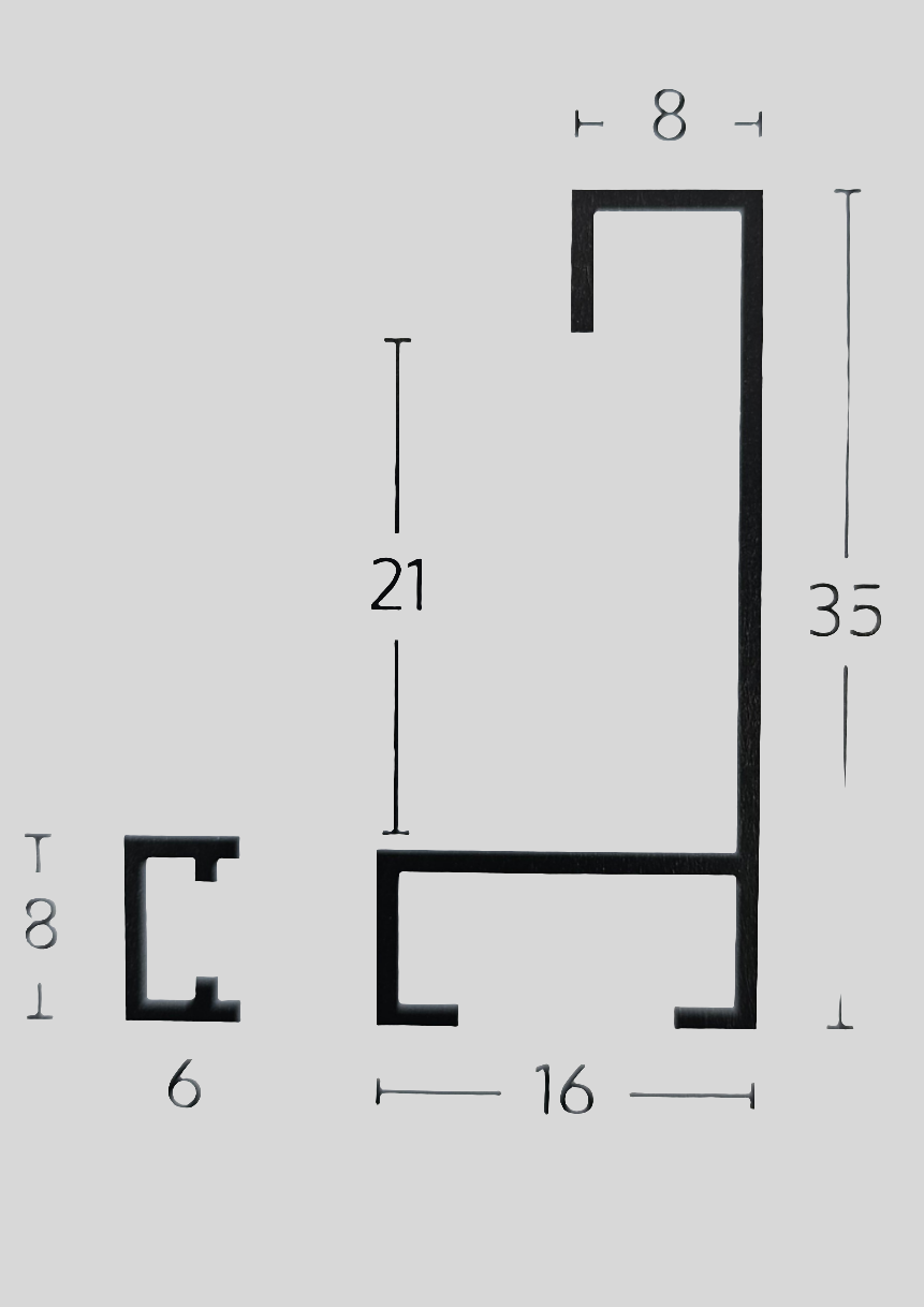 Unteres Profil: 16 mm.